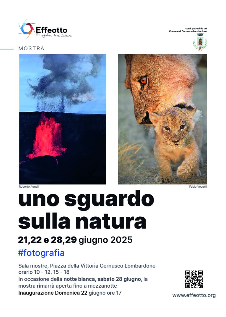 Si è conclusa domenica 29 giugno la mostra organizzata da Effeotto, con il patrocinio del comune di Cernusco Lombardone, “Uno sguardo sulla natura”, un viaggio visivo attraverso paesaggi mozzafiato, scenari selvaggi e incontri ravvicinati con la fauna, catturati con maestria da Roberto Agnelli e Fabio Vegetti.